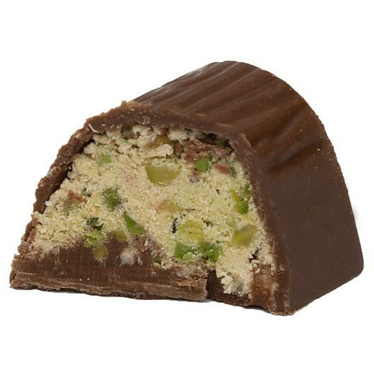 Experience the taste of fine halawa, made with the finest sesame butter and sugar ingredients mixed with pistachio inside of a delectable milk chocolate covering. One taste of this chocolate halwa with pistachio and you will meet your new favorite daily confection.